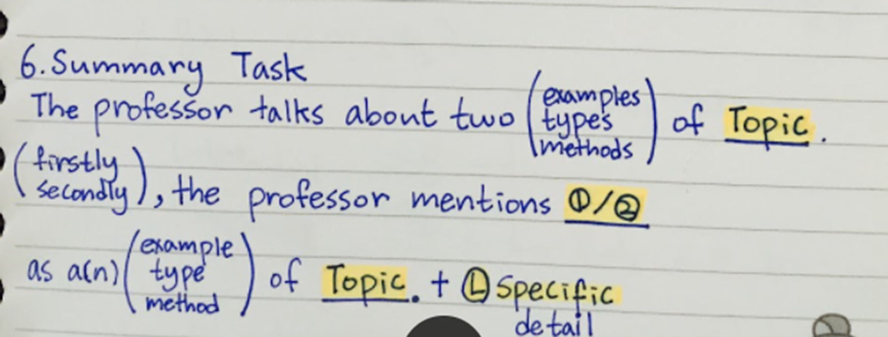 리딩보다 더 쉬울 것이다. 그냥 집중이 흐트러지지 않게 하는 것이 관건이다. 연습하면서 자신이 어느 정도의 필기를 필요로 하는 사람인지 파악하자. 너무 많은 필기를 하다 내용을 놓칠 수도 있고 너무 적은 필기로 인해 문제를 풀 때 기억이 나지 않을 수도 있기 때문이다.
